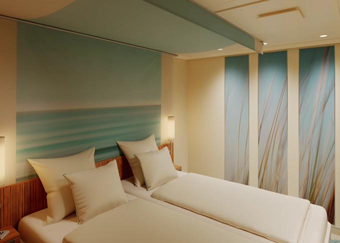 IA - Vnútorná kajuta PREMIUM 13 - 14,5 m². 4.až 9. paluba. Max 4 osoby. Cenový model Premium. 44 990 € 22 495 € za osobu