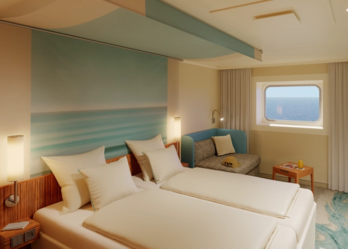 MA - Vonkajšia kajuta PREMIUM 14-16,5 m². Neotvárateľné okno. 4,5. paluba. Max 4 osoby. Cenový model Premium. 55 990 € 27 995 € za osobu